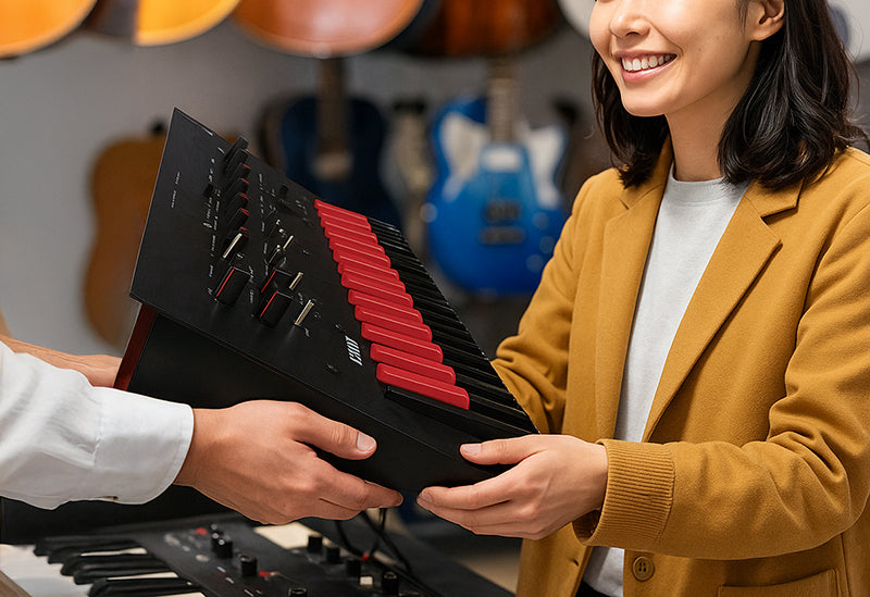 展示品や使用感のあるデモ機を集め、メーカー基準で点検・再整備(リファービッシュ)しました。外箱の傷みや外観に多少のキズはありますが、まだ十分に使える楽器たちを、新しいお客様のもとへとつなぎます。